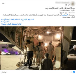 في أعقاب ذلك، تناقل ناشطون على فيسبوك صورة يدعون أنها تظهر نقل جثامين جنود سعوديين قتلوا خلال هذا الحدث،