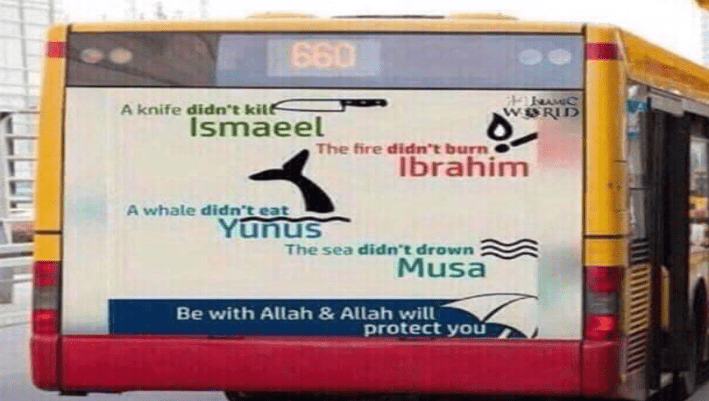 انتشرت على موقع التواصل الاجتماعي فيسبوك صورة يزعم ناشروها أنها تعود إلى حافلة في مدينة لندن عاصمة المملكة المتحدة،