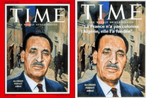 هذه الصورة مفبركة، والصورة الأصلية لغلاف مجلة تايم الأمريكية لا تظهر هذا التصريح المنسوب لفرحات عباس