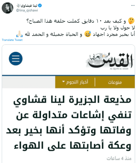 وفي السياق ذاته تواصل فريق منصة فتبينوا مع المذيعة لينا قيشاوي وأكدت لنا أن ما حصل معها خلال الحلقة كان مجرد شعور بدوخة بسيطة، وهي الان بصحة جيدة.
