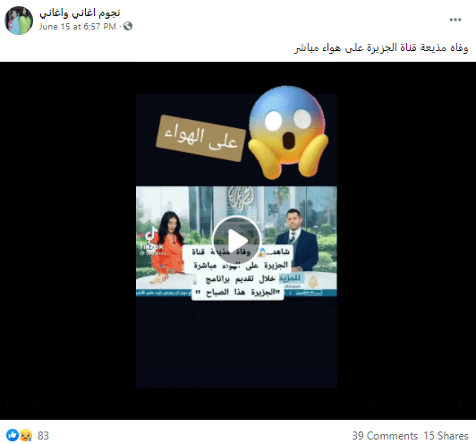 وفاه مذيعة قناة الجزيرة على هواء مباشر