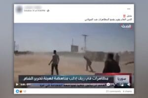 هذا المقطع قديم، ويعود لمظاهرات مناهضة لهيئة تحرير الشام في مايو 2024، ولا يصور المظاهرات الأخيرة في إدلب2 نوفمبر الساعة 9:50 PM0نشر أحد حسابات فيسبوك الادعاء بتاريخ 31 أكتوبر 2025 مرفقاً بالوصف التالي -بدون تصرف-: عاجل ‼️ الامن العام يقوم بقمع…