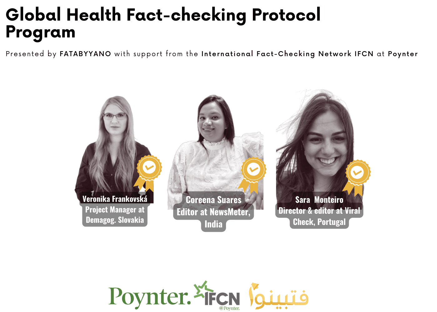 Veronika Frankovská, Project Manager at Demagog in Slovakia, Coreena Suares, Editor at NewsMeter in India, and Sara Monteiro, Director & Editor at Viral Check in Portugal, were among the participants who attended this fact-checking training series.