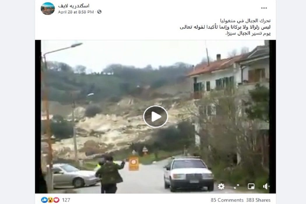 هذا المقطع يعود لانهيارات وانزلاقات أرضية في إيطاليا عام 2010 وليس لتحرك الجبال في منغوليا