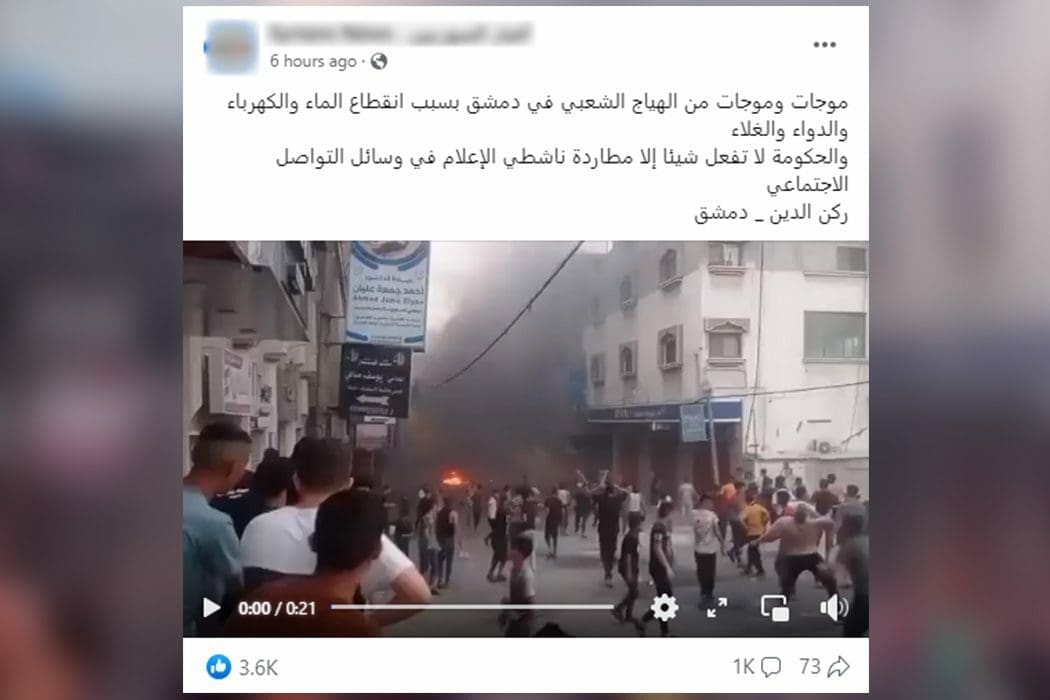 هذا المقطع متداول منذ عام 2012 على الأقل ولا يظهر مظاهرات حديثة في دمشق