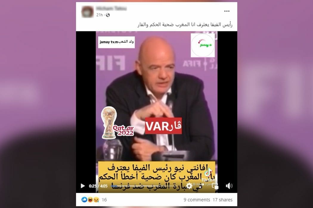 هذا المقطع لحديث رئيس الفيفا عن الأخطاء التحكيمية قديم، وليس بعد مباراة المغرب وفرنسا