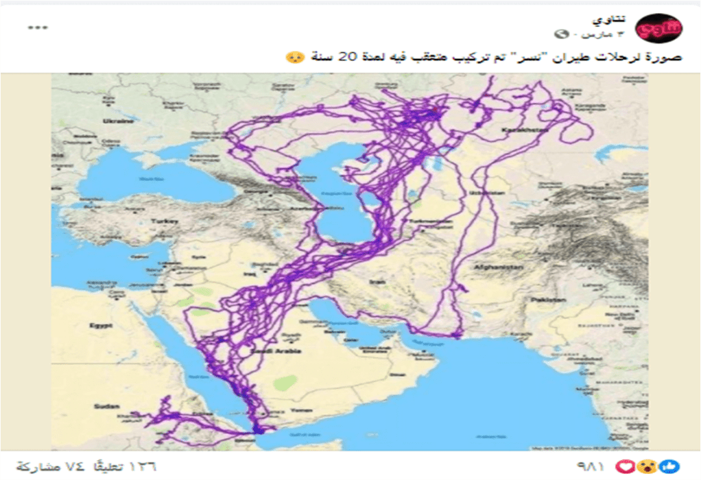 هذه الخريطة لا تظهر تتبع نسر مدة عشرين عام، بل توضح مسار عشرين عقاب خلال عام واحد !