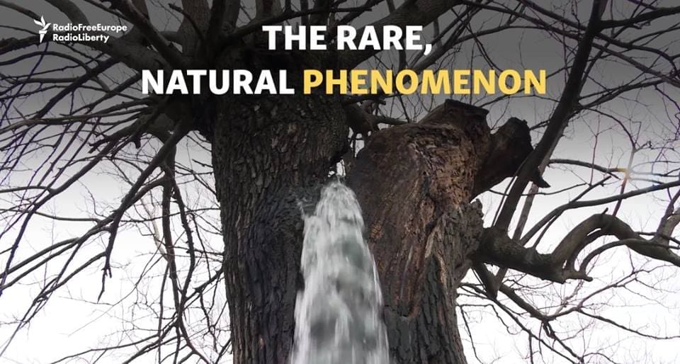 ما نراه في الفيديو هو ظاهرة طبيعية تحدث في قرية Dinoša في الجبل الأسود بسبب الأمطار الغزيرة التي تغمر المياه الجوفية تحت الأرض ونتيجة الضغط تندفع المياه خلال الجذع المجوف إلى الخارج