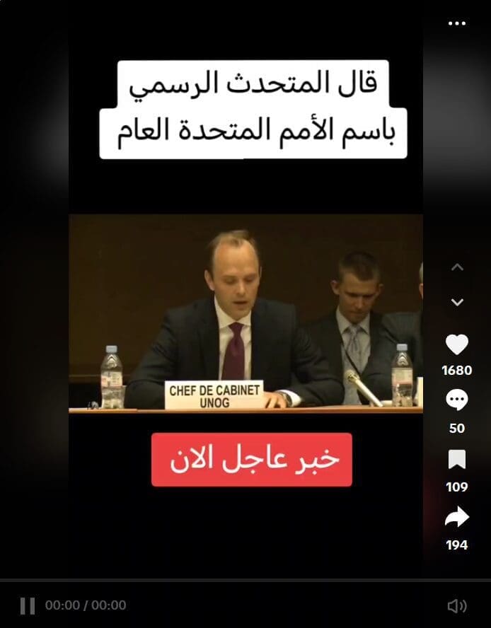 تداول ناشطون على التيكتوك مقطع فيديو يدعون أنه يصور تصريحًا للمتحدث الرسمي باسم الأمم المتحدة حول ميليشيات تثير الخراب في عدد من الدول منها العراق.