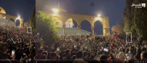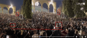 والتي نشرت مشاهد مطابقة لمشاهد فيديو الادعاء في 07 أبريل 2023 مبينة أنها تظهر هتافات الشبان بعد أدائهم صلاة الفجر في المسجد الأقصى آنذاك،