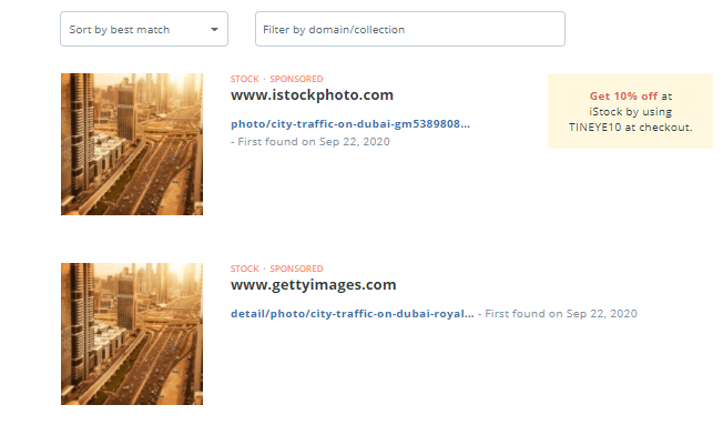 من خلال استخدام خاصية البحث العكسي من موقع TinEye، عثرنا على العديد من النتائج والتي كان من ضمنها موقع istockphoto.com وموقع gettyimages.com،