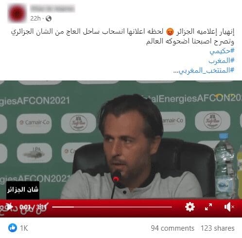 في مقدمتها موقع “france24“، حيث نشر المقطع بتاريخ 15 يناير 2022 يؤكد فيه مدرب ساحل العاج باتريس بوميل