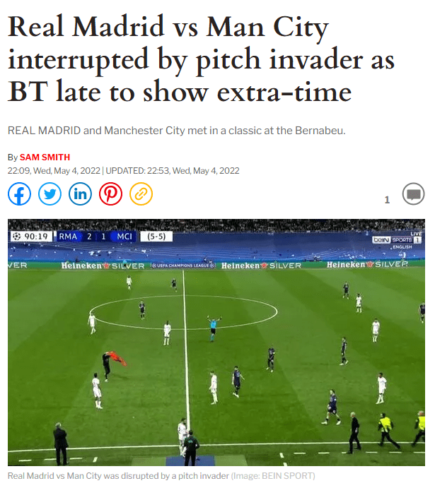 في أعقاب فوز نادي ريال مدريد على نظيره نادي مانشستر سيتي بنتيجة 3 أهداف مقابل هدف واحد،