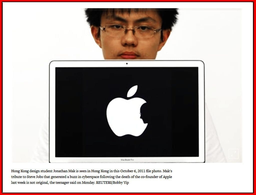 ليست صورة شعار أبل “Apple” الأصلي وإنما مجرد تصميم يعود للفنان جوناثان ماك “Jonathan Mak” من هونج كونج
