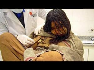أما الصورة فهي لواحدة من ثلاث مومياوات لأطفال الإنكا عثر عليهم في عام 1999 في الأرجنتين