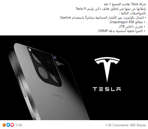 نص ادعاء “إعلان إيلون ماسك عن هاتف تسلا الذكي “