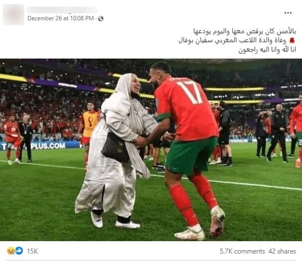 انتشر على مواقع التواصل الاجتماعي خبرًا يزعم ناشروه وفاة والدة لاعب المنتخب المغربي سفيان بوفال مؤخرًا.
