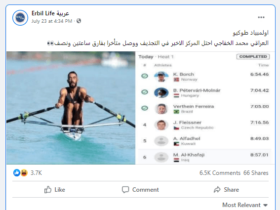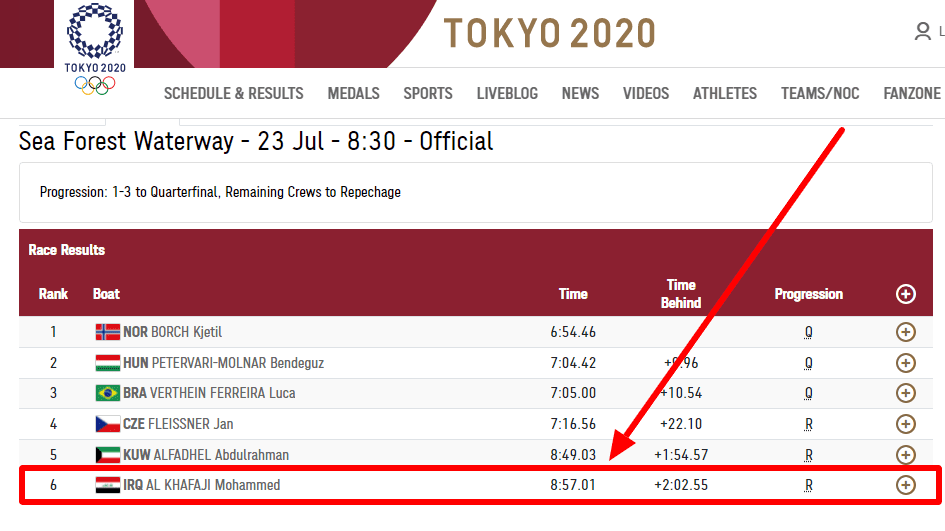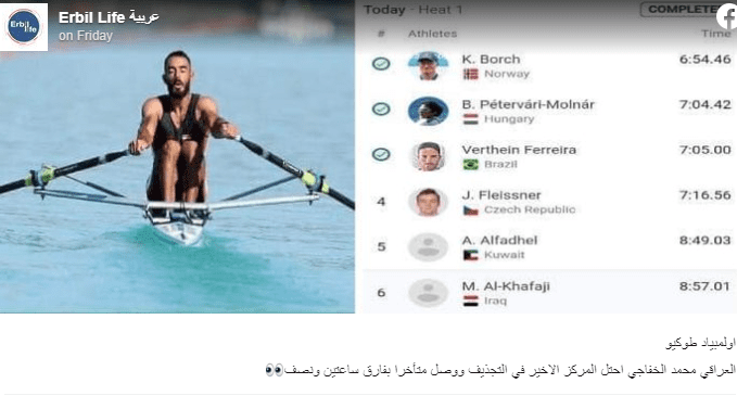 العراقي محمد الخفاجي احتل المركز الاخير في التجذيف ووصل متأخرا بفارق ساعتين ونصف عن الفائز بالمركز الأول في أولمبياد #طوكيو