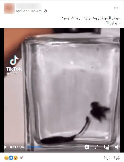 حيث نشر أحد مستخدمي المنصة مقطعاً مشابهاً للسائل الذي يظهر في مقطع الادعاء،