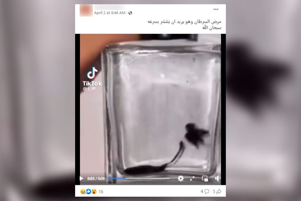 هذا المقطع يصور سائل ممغنط داخل زجاجة، وليس مرض السرطان