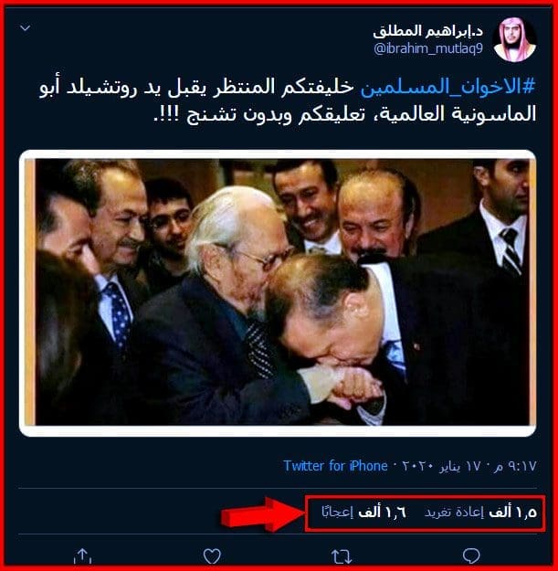 تناقل مستخدموا مواقع التواصل الإجتماعي صورة للرئيس التركي رجب طيب أردوغان وهو يقبل يد روتشيلد الملقب بأبي الماسونية