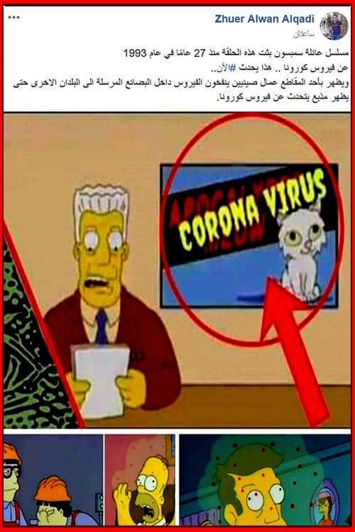 تداول عدد من مستخدمي مواقع التواصل الاجتماعي صورة من مسلسل سيمبسون يعرض خبرا متعلقا بفيروس الكورونا