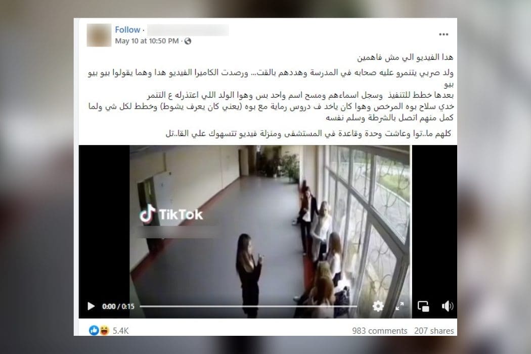 في أعقاب ذلك، تناقل ناشطون على فيسبوك مقطعاً يدعون أنه يصور تعرض الطالب للتنمر، قبيل تنفيذه لهذا الهجوم،