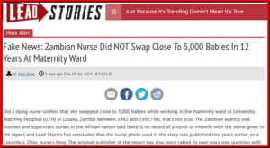 التحقيقات الأولية التي قام بها مسؤولون في زامبيا أوضحت أنه لا توجد ممرضة تحمل اسم إليزابيث مويوا ( الاسم المتداول للمرضة في الادعاء ) في المجلس العام للتمريض وكشف التحقيق أيضًا أنه لا توجد أي قابلة بهذا الاسم على الإطلاق، وعملت لاحقًا في قسم الولادة في المستشفيات التعليمية الجامعية