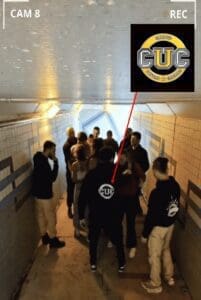 علاوة على ذلك، يظهر واضحًا في المقطع أن أحد الشبان يردي زيًّا يحمل شعار المركز “CUC“،
