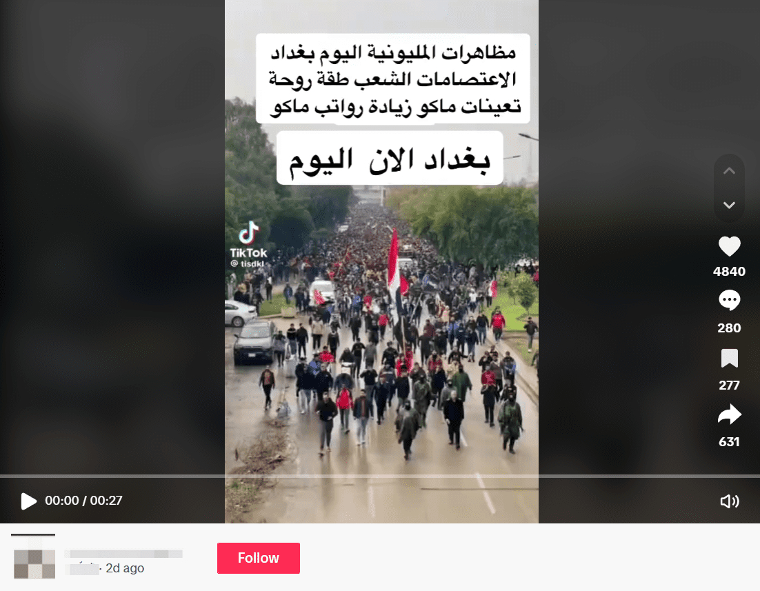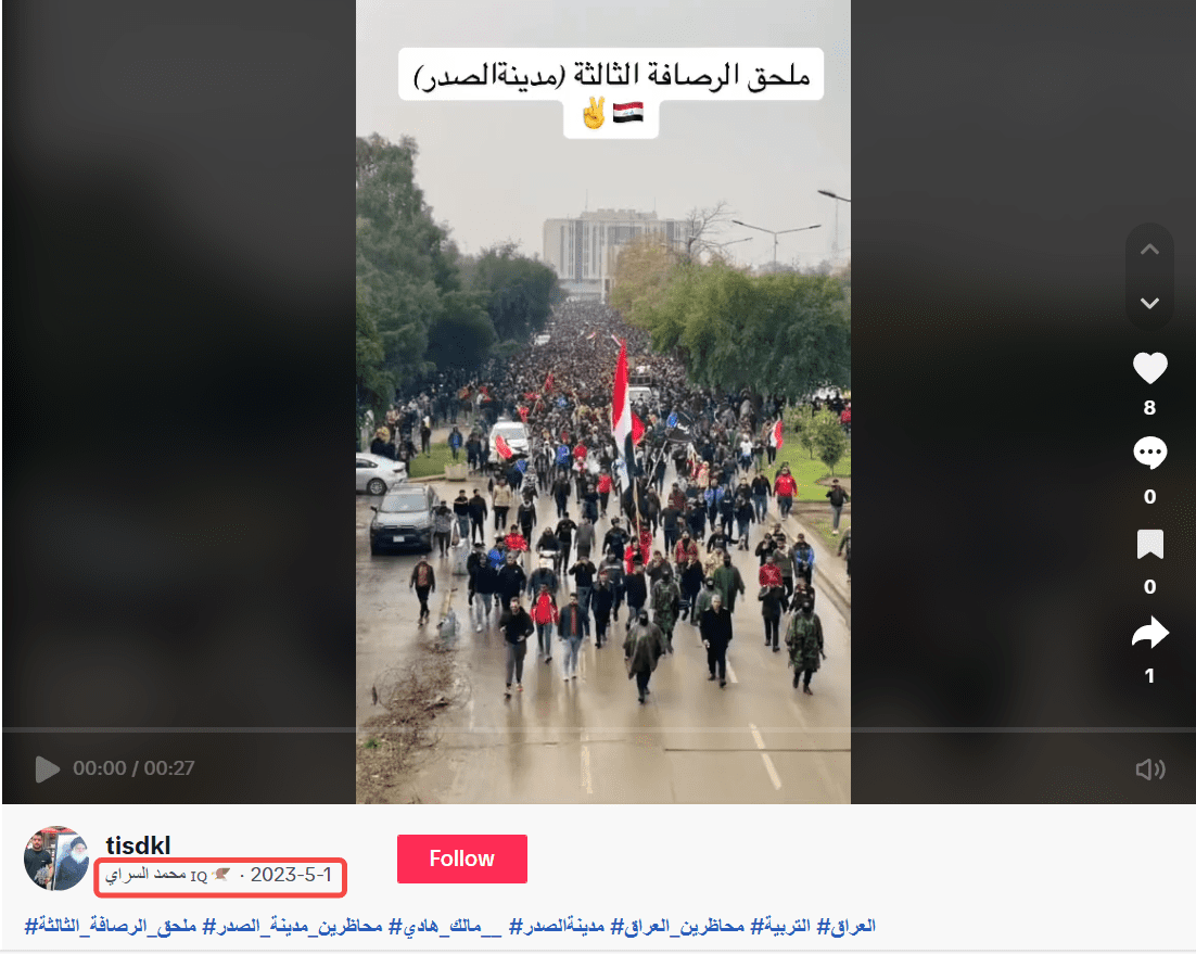 وتداول المقطع منذ 1 مايو 2023، ينفي أن يكون يصوّر مظاهرات حديثة في بغداد.