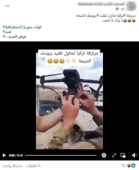 هذا وقد نشرت قناة بوابة الشؤون العسكرية على منصة التليجرام المقطع ذاته بتاريخ 14 يوليو 2022، وأرفق في وصفه –دون تصرف-: “أنه يظهر فشل الجنود الأوكرانيين في إطلاق طائرة رباعية بدون طيار محملة بقنبلة”.