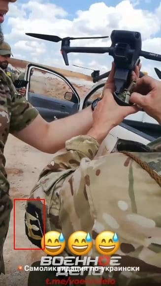 علاوة على ذلك؛ يظهر شعار كتيبة دونباس الأوكرانية على الزي الخاص بالجنود في المقطع عند الدقيقة (00:01)، مما يؤكد أن المقطع يعود للجيش الأوكراني وليس لفصائل موالية لتركيا.