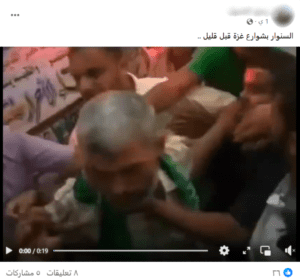 هذا المقطع يعود لاستقبال يحيى السنوار في غزة عام 2011، ولا يبين تجوله في الشوارع حديثا في ظل الحرب الجارية