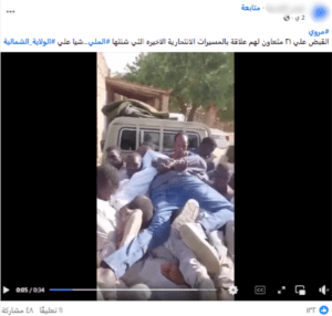 إذ من خلال البحث العكسي عن إحدى مشاهد الفيديو الثابتة عبر محرك جوجل تبين أنه متداول منذ 16 أبريل 2023 – على الأقل -، على أنه يوثق لحظات القبض على عناصر من قوات الدعم السريع في مدينة مروي شمال السودان آنذاك.
