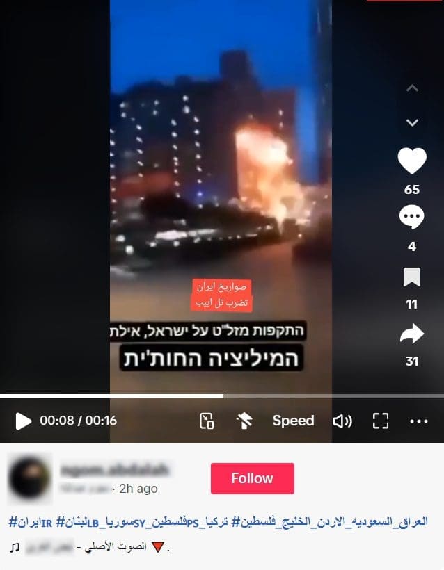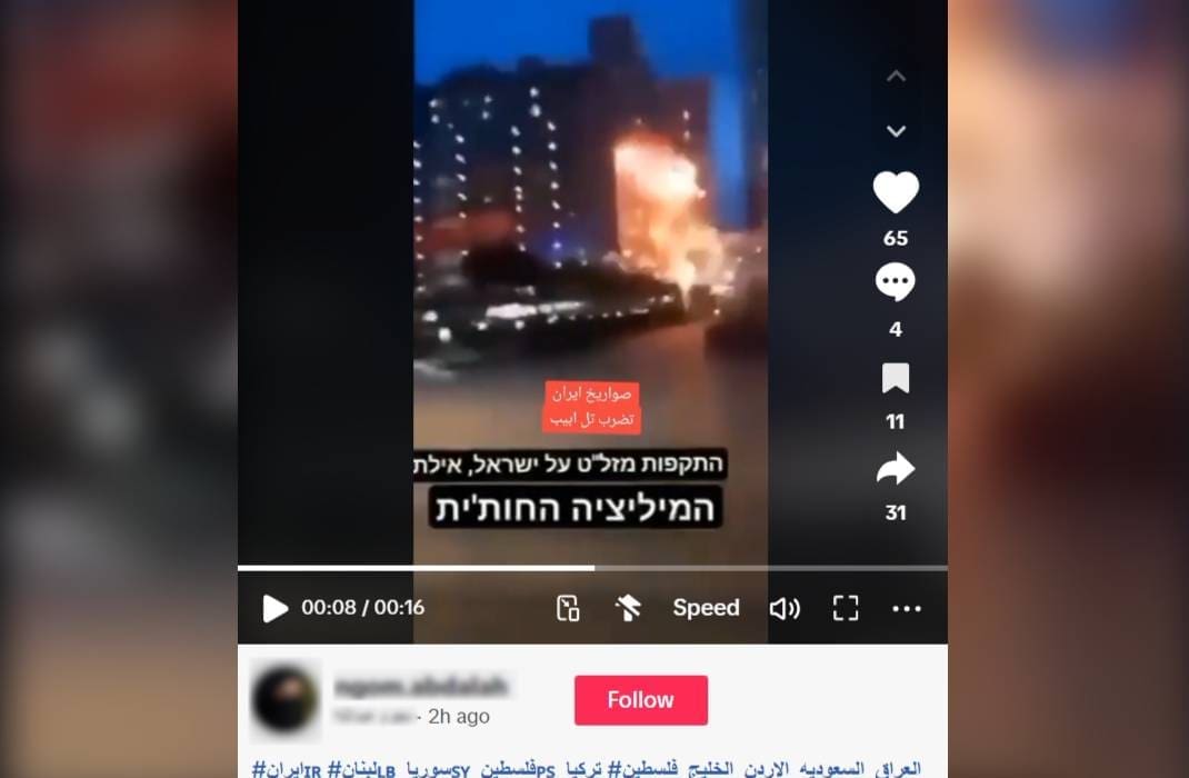 إثر ذلك تداول ناشطون على التيك توك مقطع فيديو يدعون أنه يظهر مشاهد لقصف إيران لتل أبيب مؤخرًا،
