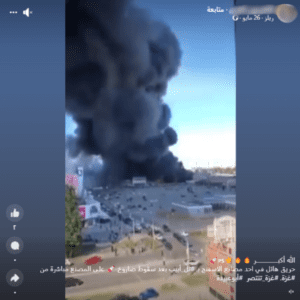 في أعقاب ذلك، تناقل ناشطون على فيسبوك مقطعًا يدعون أنه يظهر احتراق مصنع إسفنج في تل أبيب إثر سقوط صواريخ من غزة،