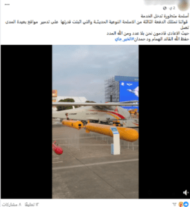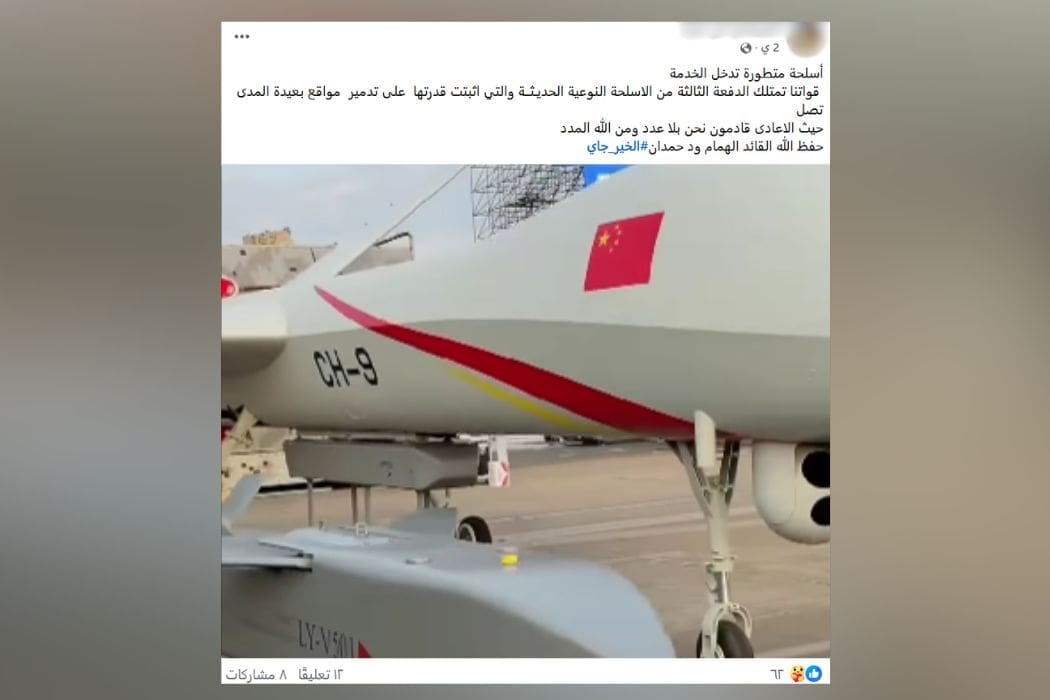 قاد البحث العكسي عن إحدى لقطات الفيديو الثابتة عبر محرك جوجل إلى الفيديو ذاته منشورًا عبر إحدى صفحات فيسبوك في ديسمبر 2024 على أنه يظهر المسيرة الصينية CH-9 وأرفق المقطع بعلامة مائية تقود لحساب على انستغرام كان قد نشره في نوفمبر 2024 مبينًا أنه يعود لـ معرض الصين الدولي للطيران والفضاء.