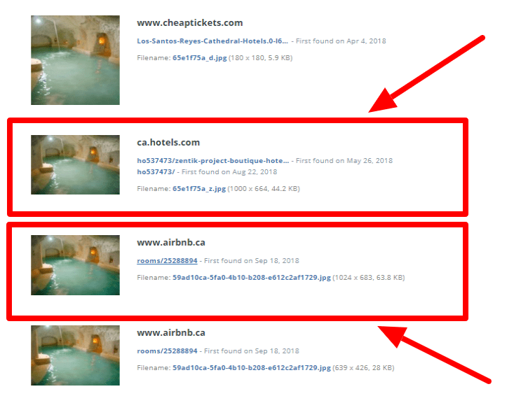 أرشد البحث العكسي عن أحدى الصور من منشور الادعاء في موقع Tineye، على عدة نتائج وكان من ضمنها موقع ca.hotels.com وموقع airbnb.ca
