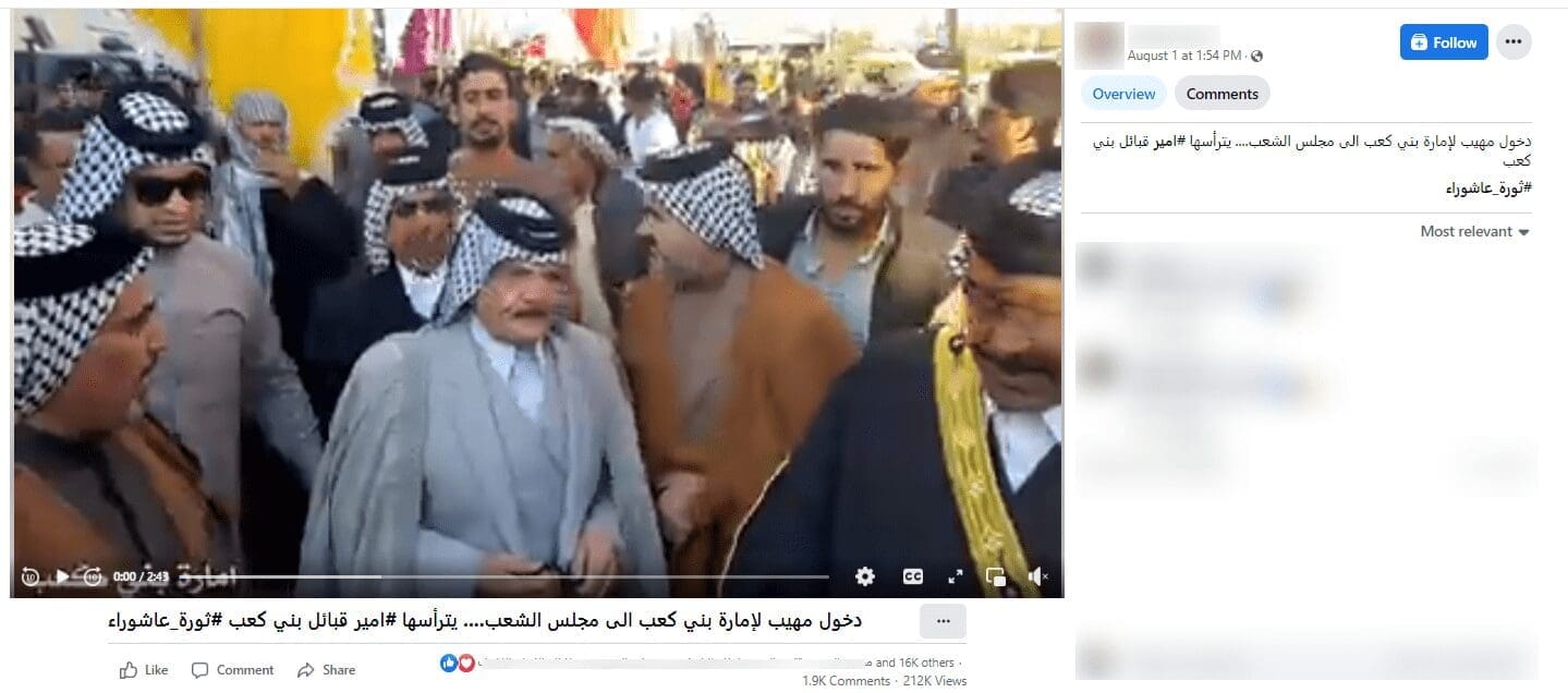 انتشر على مواقع التواصل الاجتماعي مقطع فيديو يزعم ناشروه أنه يظهر دخول إمارة بني كعب إلى مجلس الشعب في العراق مؤخرا،