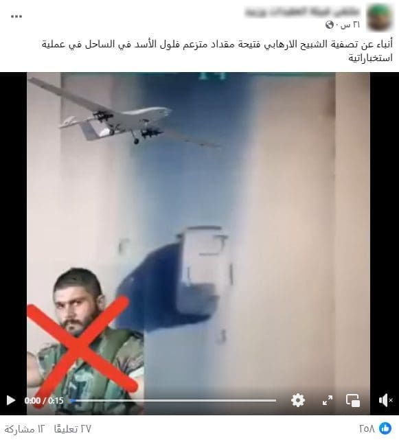 هذا المقطع قديم منذ عام 2019، ويعود لعملية استهداف عناصر من وحدات حماية الشعب الكردية بطائرة مسيرة تركية آنذاك، ولا يصور اغتيال مقداد فتيحة أحد أتباع النظام السابق في عملية استخباراتية سورية مؤخرًا