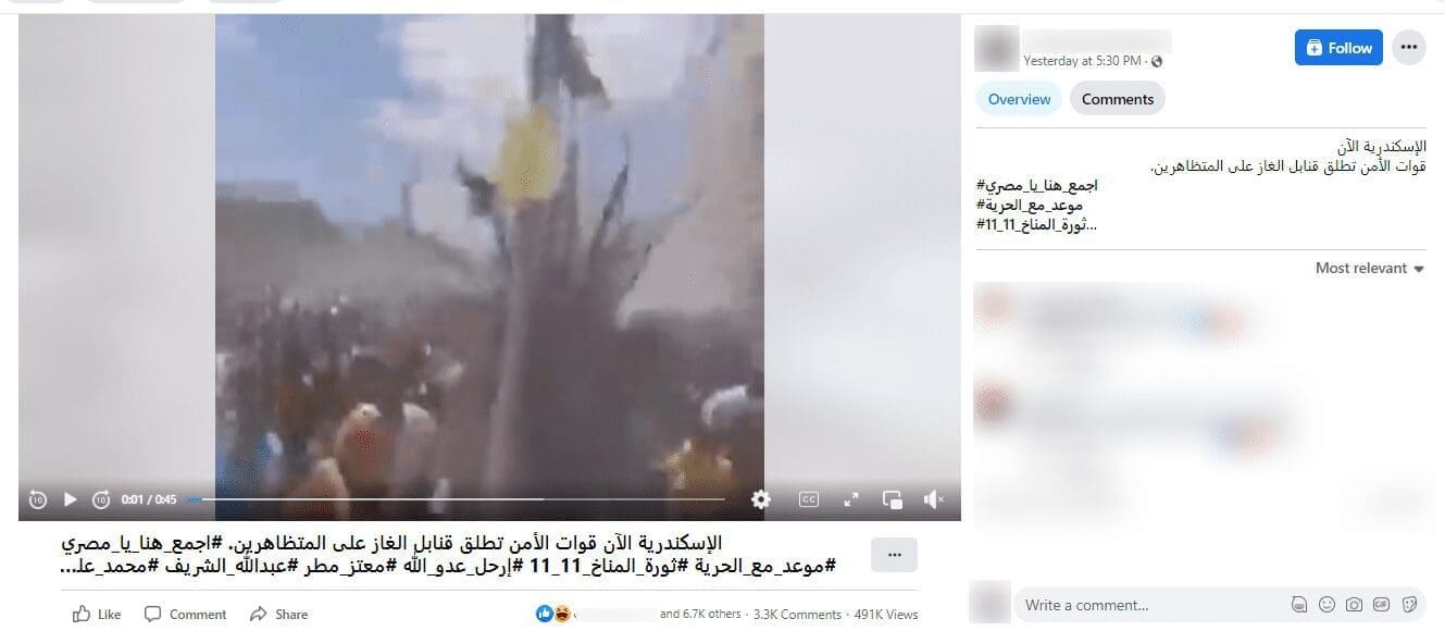 وتداول المقطع منذ عام 2021 ينفي أن يكون حديثًا ويصور تظاهرة حالية في مدينة الإسكندرية.