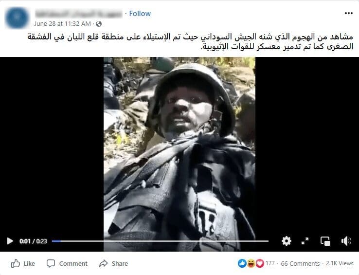 انتشر على مواقع التواصل الاجتماعي مقطع فيديو يزعم ناشروه أنه يظهر مشاهد من هجومٍ شنه الجيش السوداني في منطقة قلع اللبان في الفشقة،