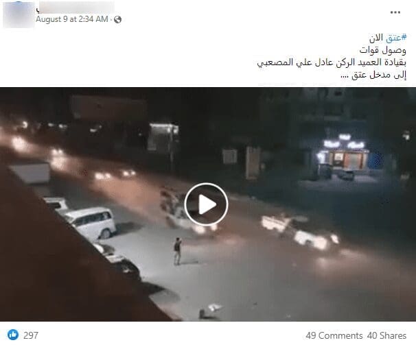 هذا المقطع متداول منذ عام 2019 ولا يظهر دخول قوات عسكرية إلى منطقة عتق حديثًا