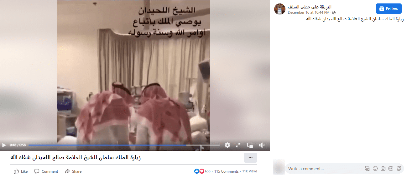 هذا المقطع قديم ولا يظهر زيارة العاهل السعودي لصالح اللحيدان
