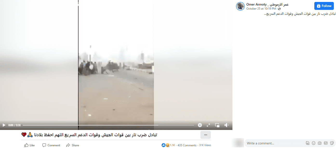 انتشر مقطع على مواقع التواصل الاجتماعي يزعم ناشروه أنه يظهر تبادل اطلاق النار بين الجيش وقوات الدعم السريع في السودان، فما حقيقة هذا المقطع؟
