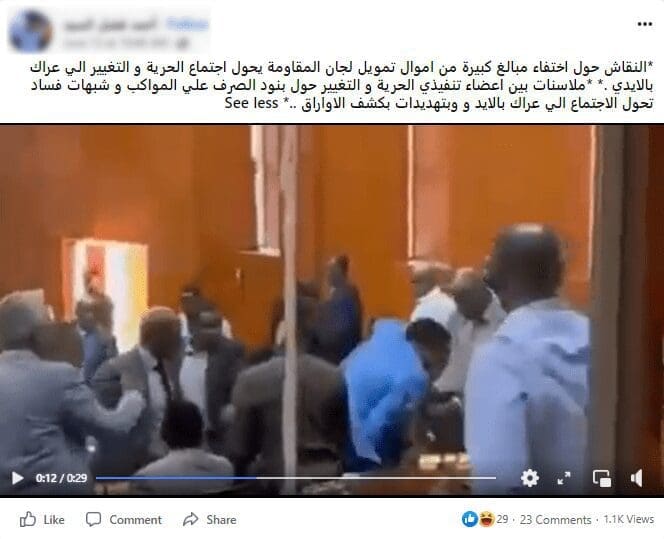 يتداول روّاد موقع التواصل الاجتماعي فيسبوك مقطع فيديو يزعم ناشروه أنه يُظهر لحظات تحوّل اجتماع المكون العسكري مع قوى