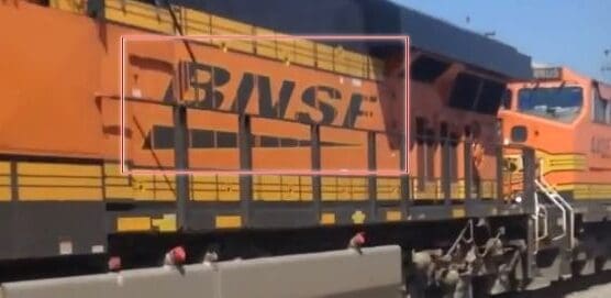 في الثانية 00:17 للمقطع يُمكننا ملاحظة اسم شركة القطار (BNSF) وهي أكبر شبكة سكة حديد للشحن في أمريكا الشمالية.