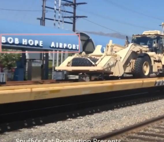 وعند الدقيقة 02:09 وأيضًا 02:16 يظهر خلف القطار اسم المطار (Bob Hope AirPort) وهو مطار أمريكي في ولاية كاليفورنيا