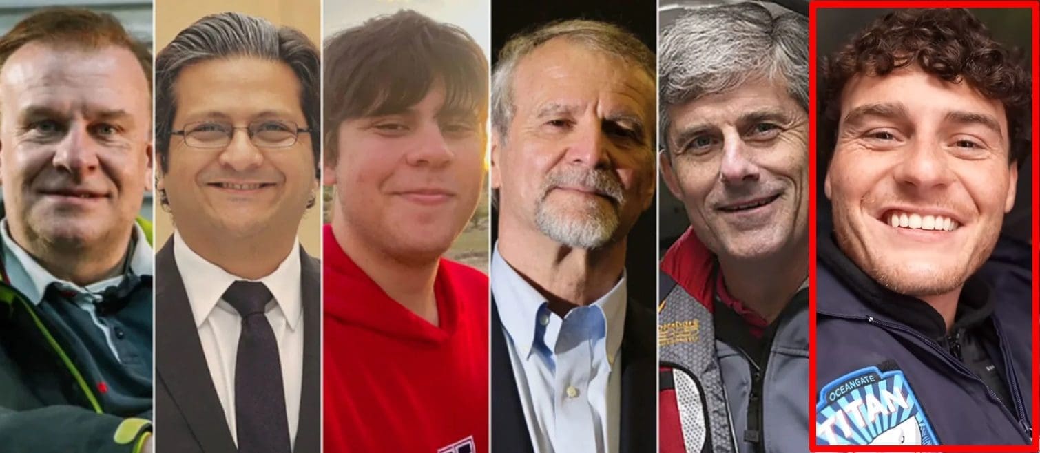 مقارنة صورة جيك كوهلر الظاهر في مقطع الادعاء (يمين) مع صور ضحايا حادثة الغواصة