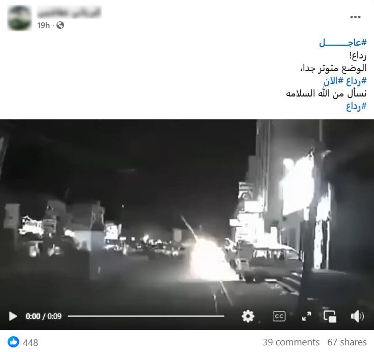 إذ نشر حساب عبر المنصة مشاهد المقطع ذاتها بتاريخ 15 يونيو 2024، على أنه يبين اشتباكات في شوارع رداع آنذاك، عقب ذلك؛ وبالبحث العكسي عن لقطة من المقطع الأخير؛ تبين أن أقدم تداول للمقطع كان بتاريخ 19 مارس 2024، إذ نشرت العديد من المواقع المحلية في اليمن حول اندلاع اشتباكات في جولة الكراع بمديرية دار سعد، واستخدم فيها، الأسلحة المتوسطة والخفيفة.